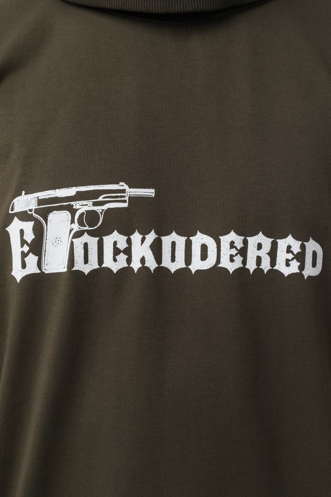 Футболка из хлопка без лишней ширины. Данное изделие является частью совместной коллекции CODERED и московского бомбера Etock.
