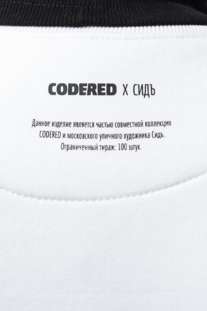 Классическая утеплённая толстовка. Фит без лишней ширины для гребущих против течения уличной актуальности. Данное изделие является частью совместной коллекции CODERED и московского уличного художника Сидъ.